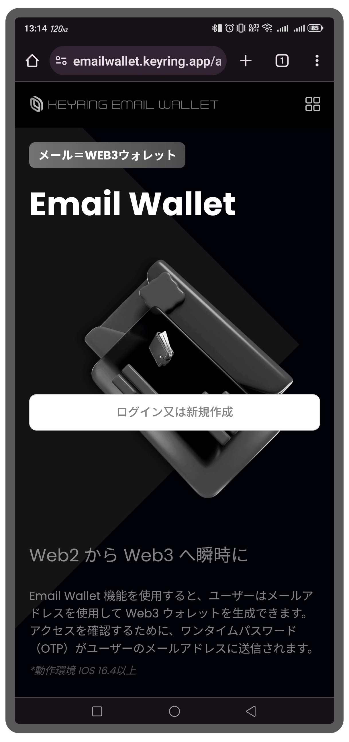 KEYRING Email Walletを作成するには、次の手順に従ってください:
