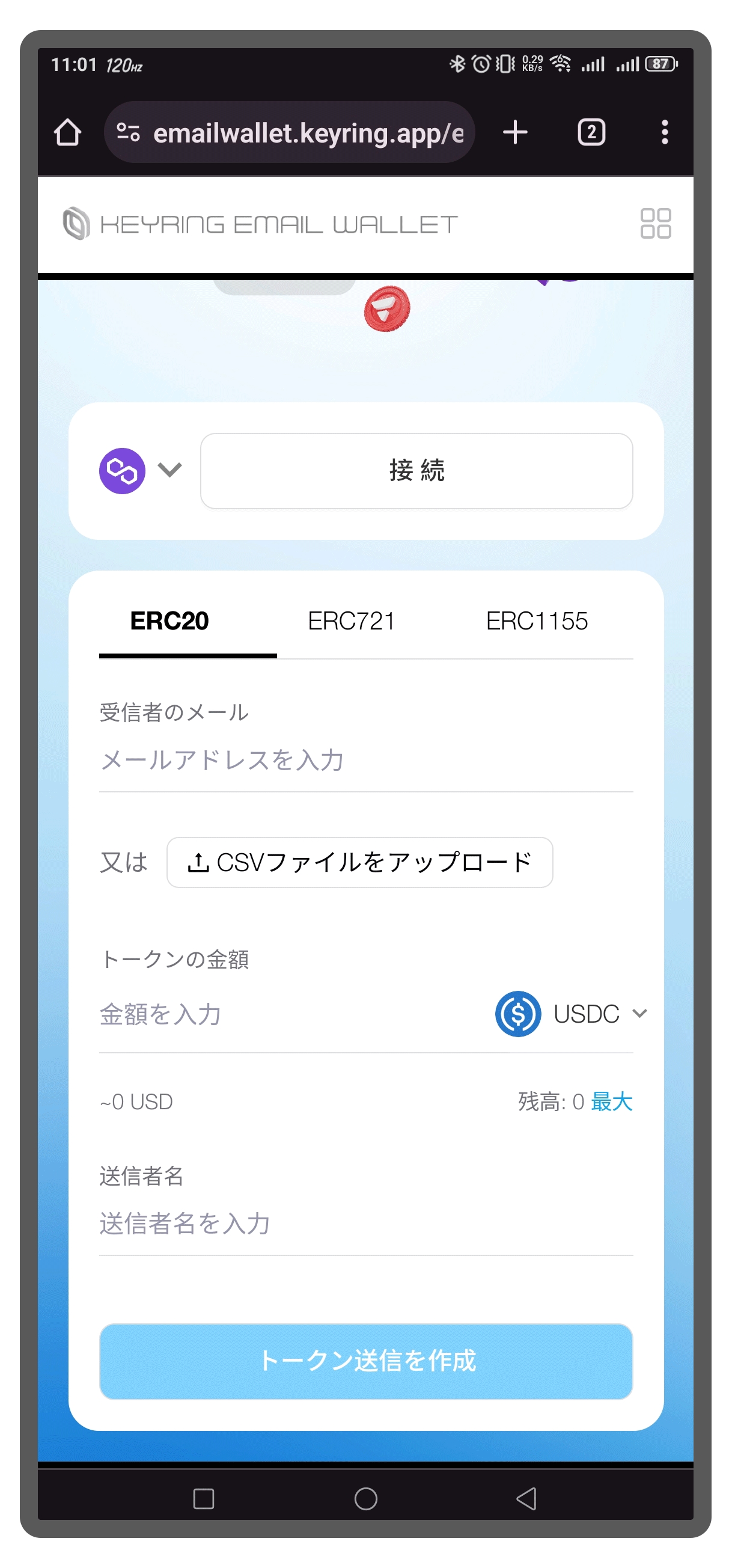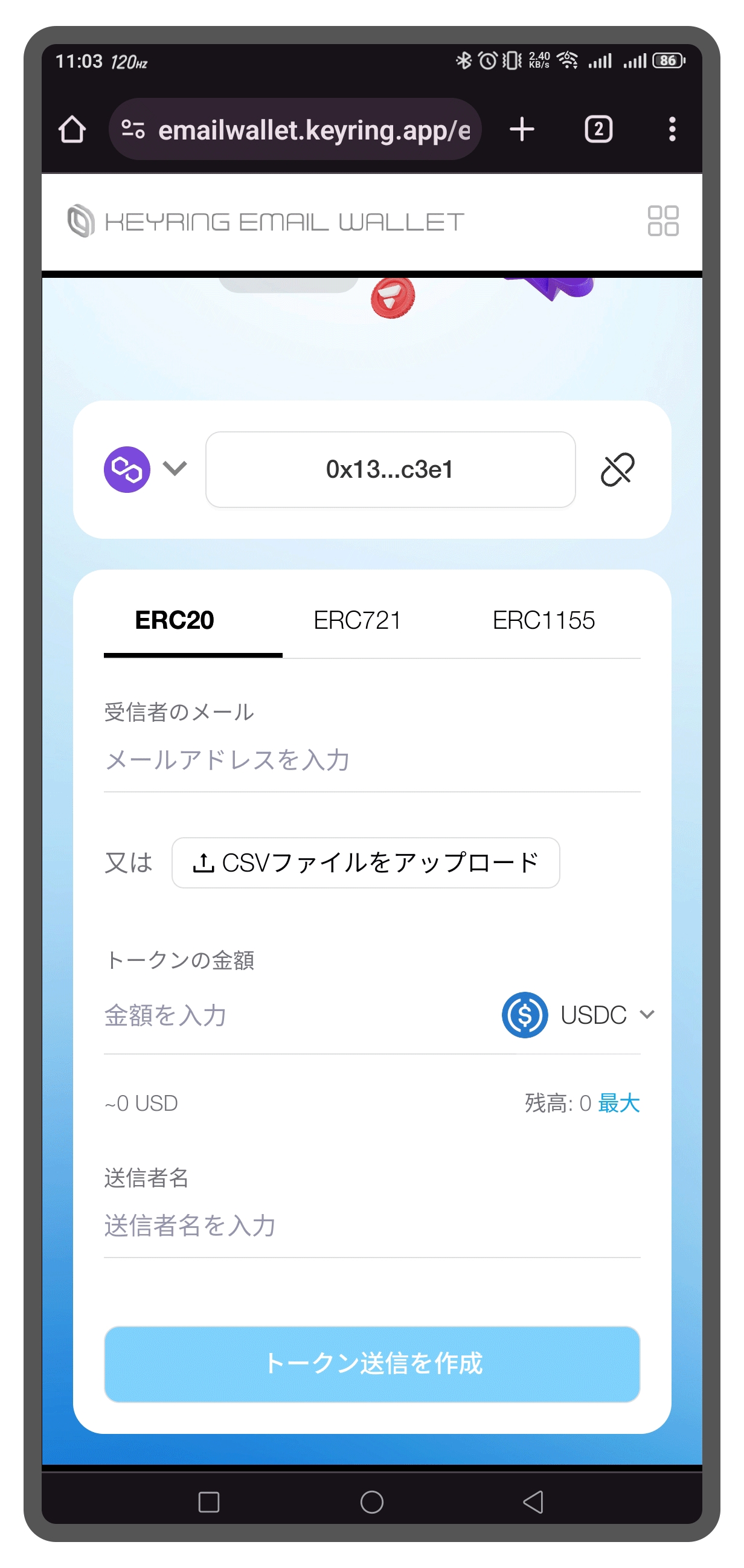 これはKEYRING Email Walletのユニークな機能で、受信者のウォレットアドレスを必要とせずにトークンを送信できます。必要なのは受信者のメールアドレスだけです。