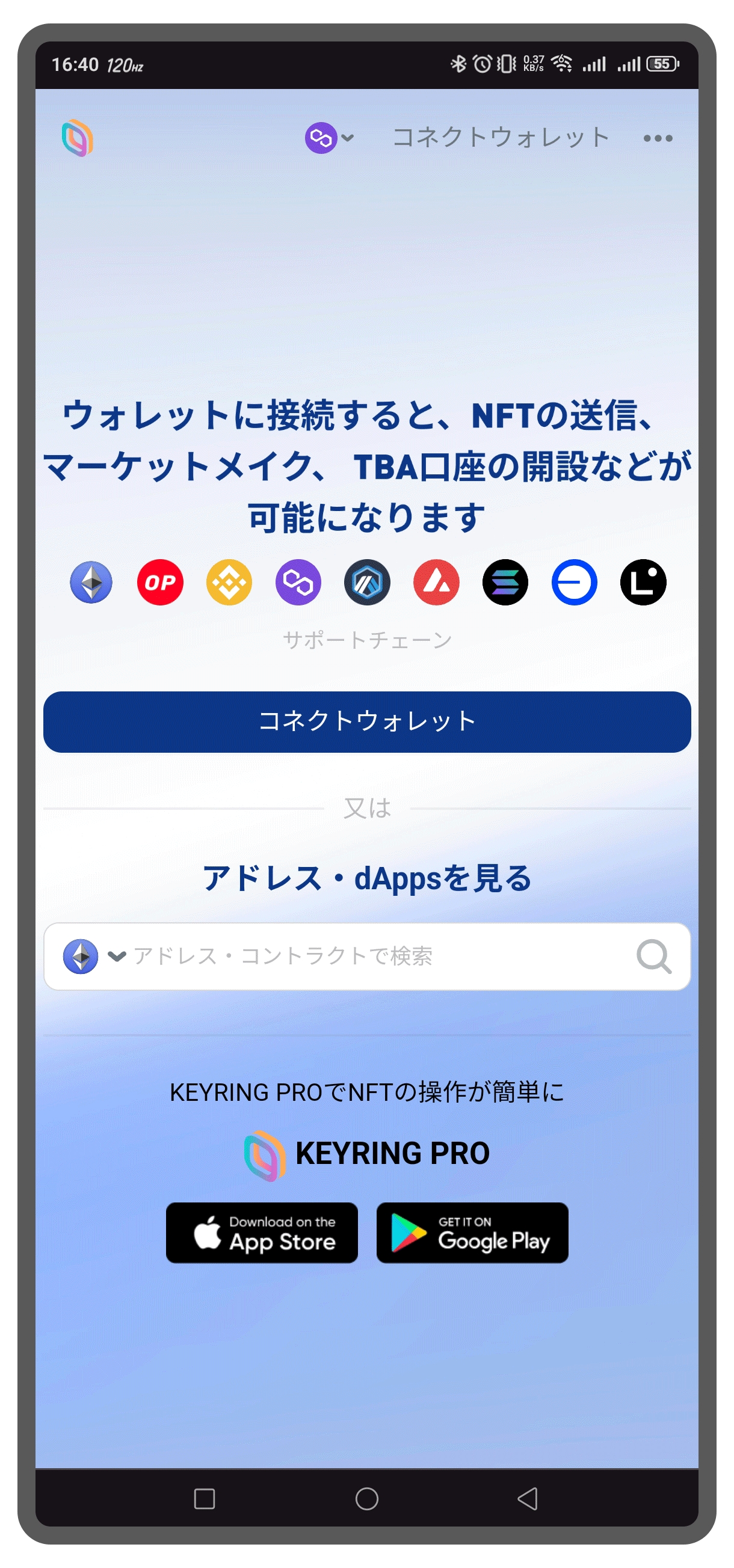 KEYRING NFT Viewerのウェブサイトにアクセスします。