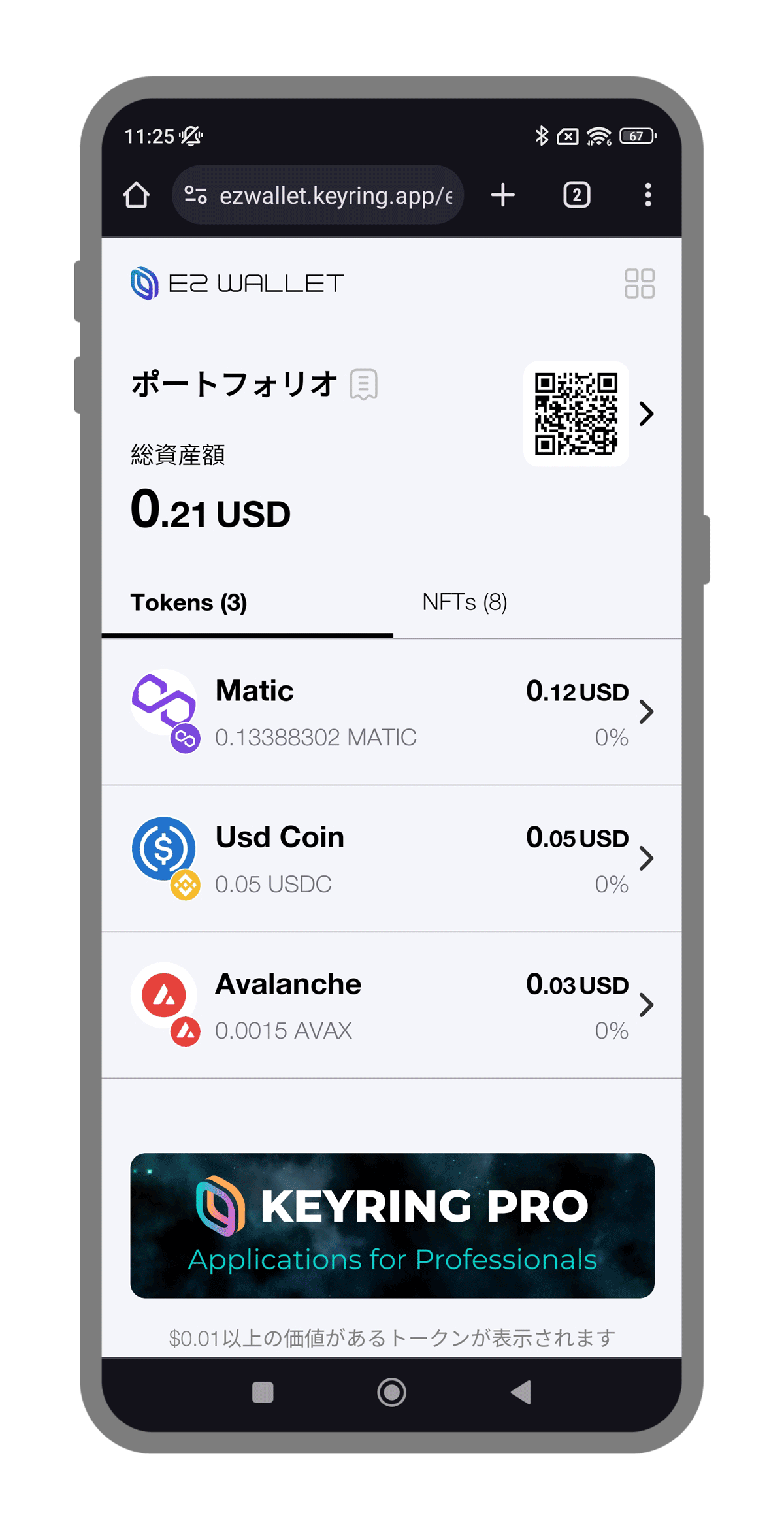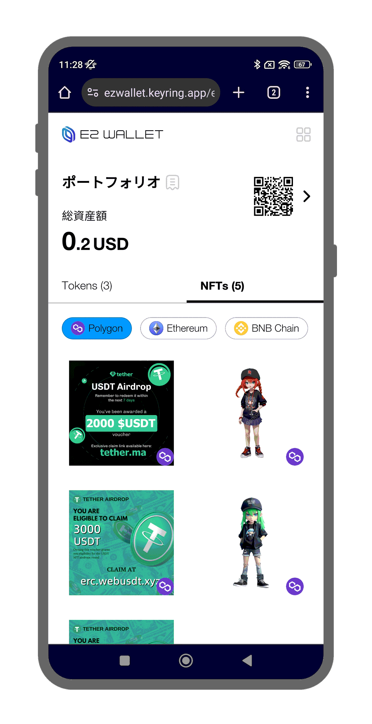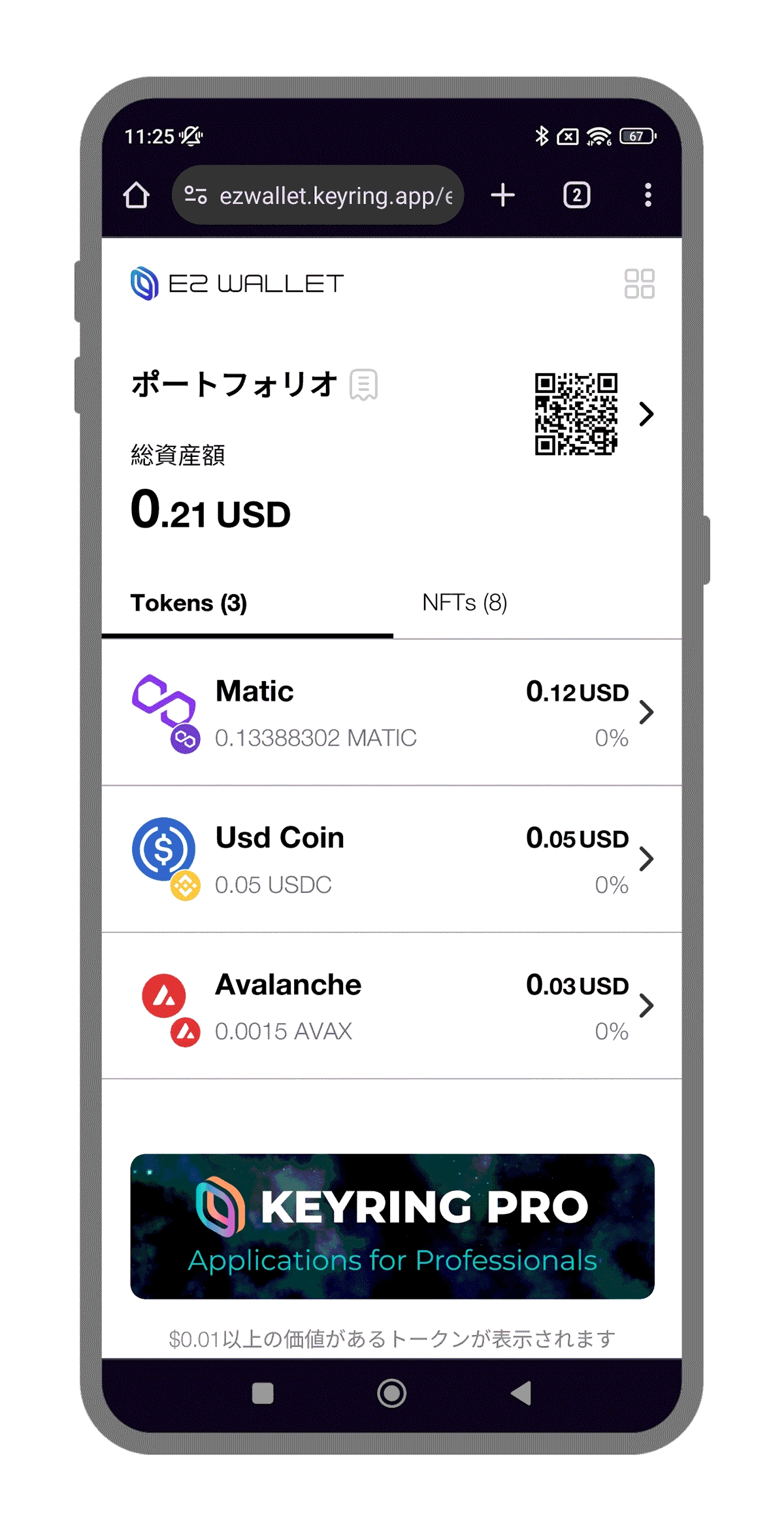 EZウォレットのアドレスにアクセスするのは簡単です。QRコードをクリックするだけです。