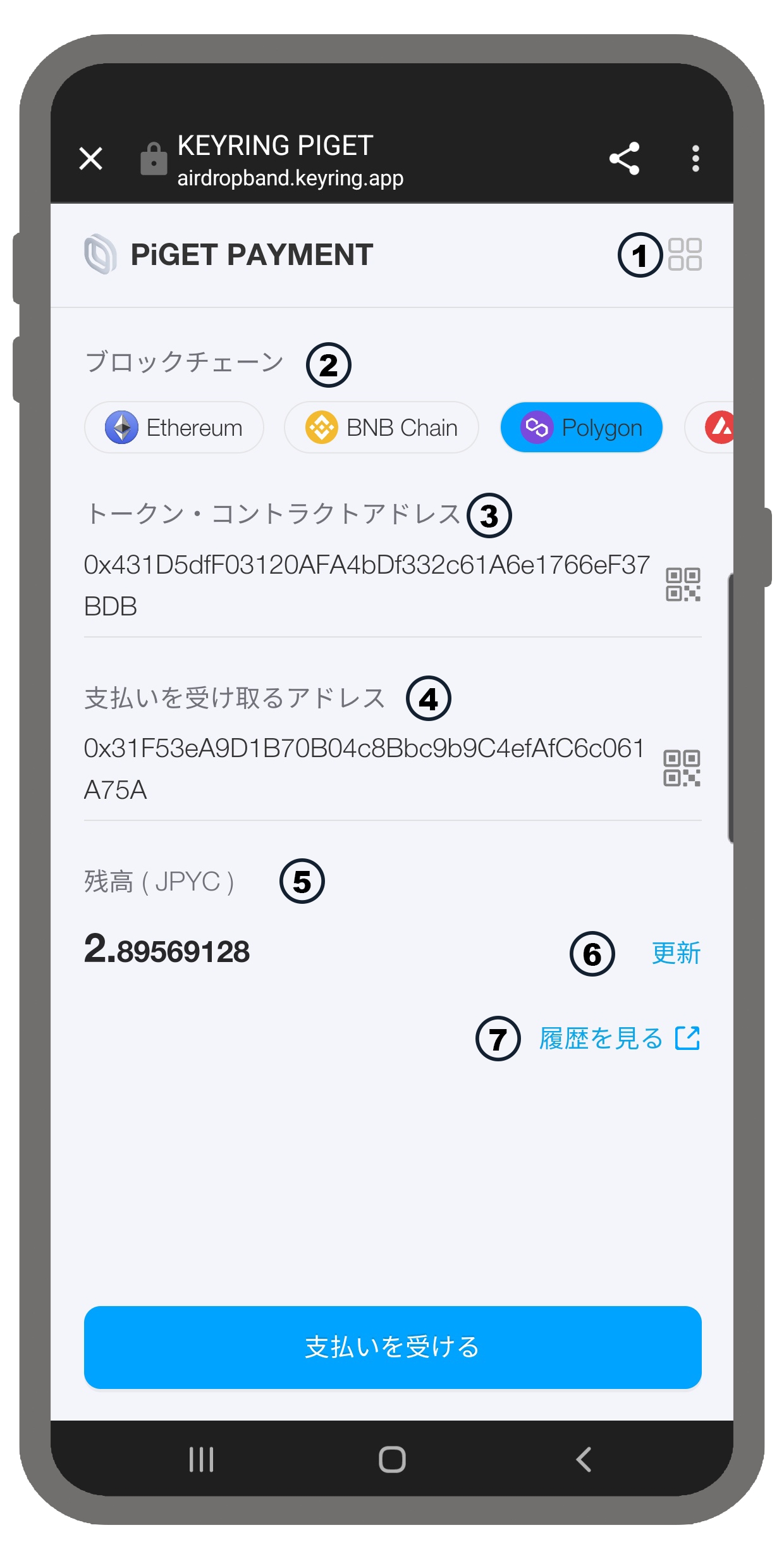 KEYRING PiGET Paymentページにアクセスした後、支払いを受け取るために以下の手順に従います: