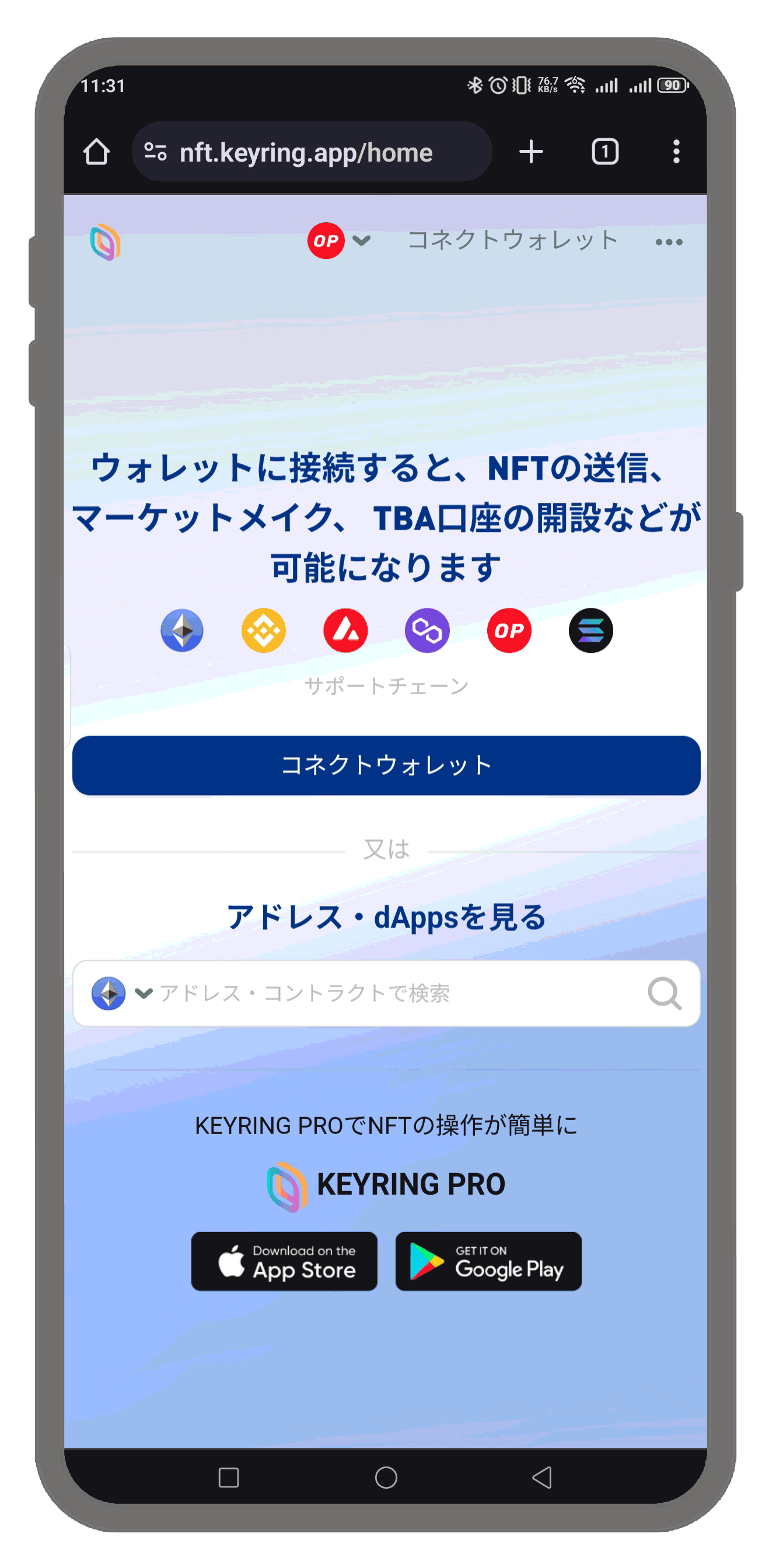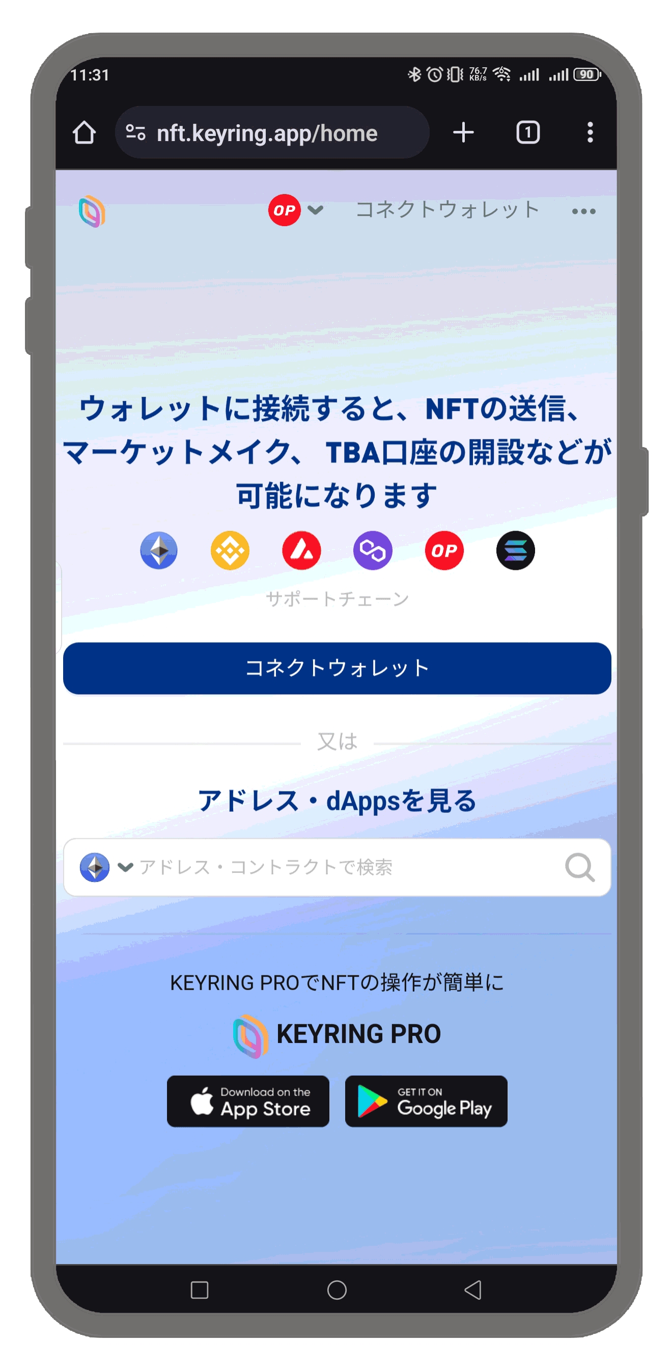 KEYRING NFT Viewerのウェブサイトにアクセスします。