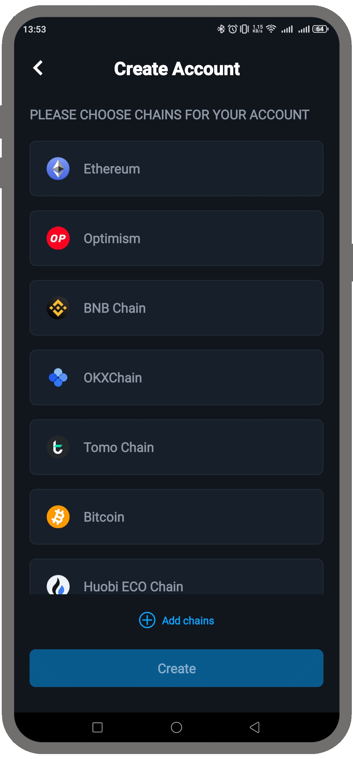 KEYRING PROで管理したいブロックチェーンを選択します。