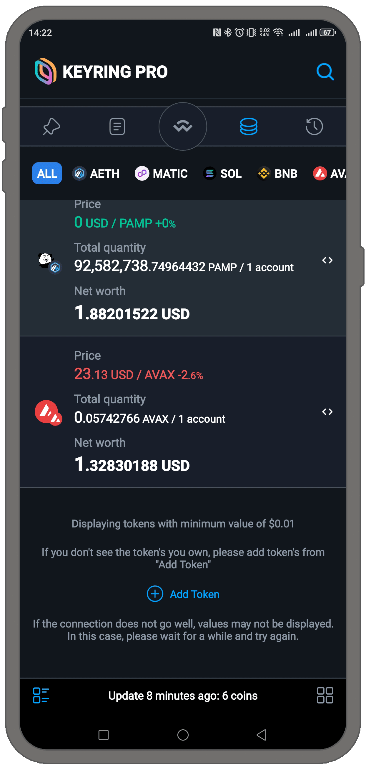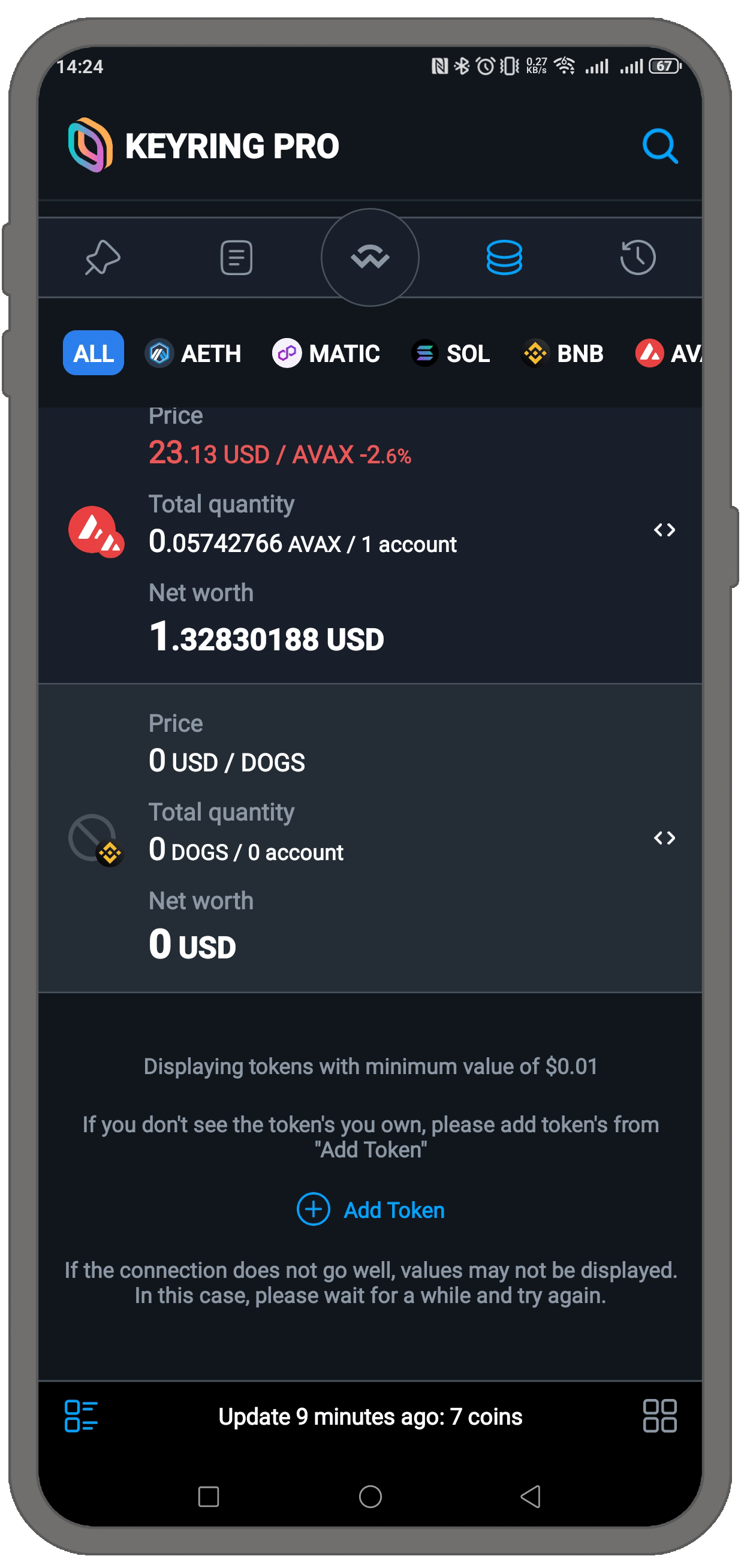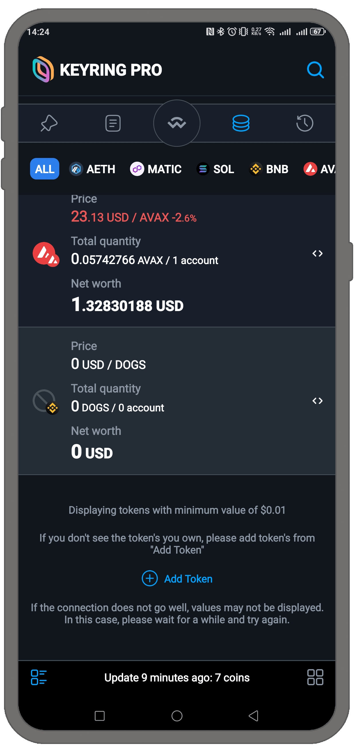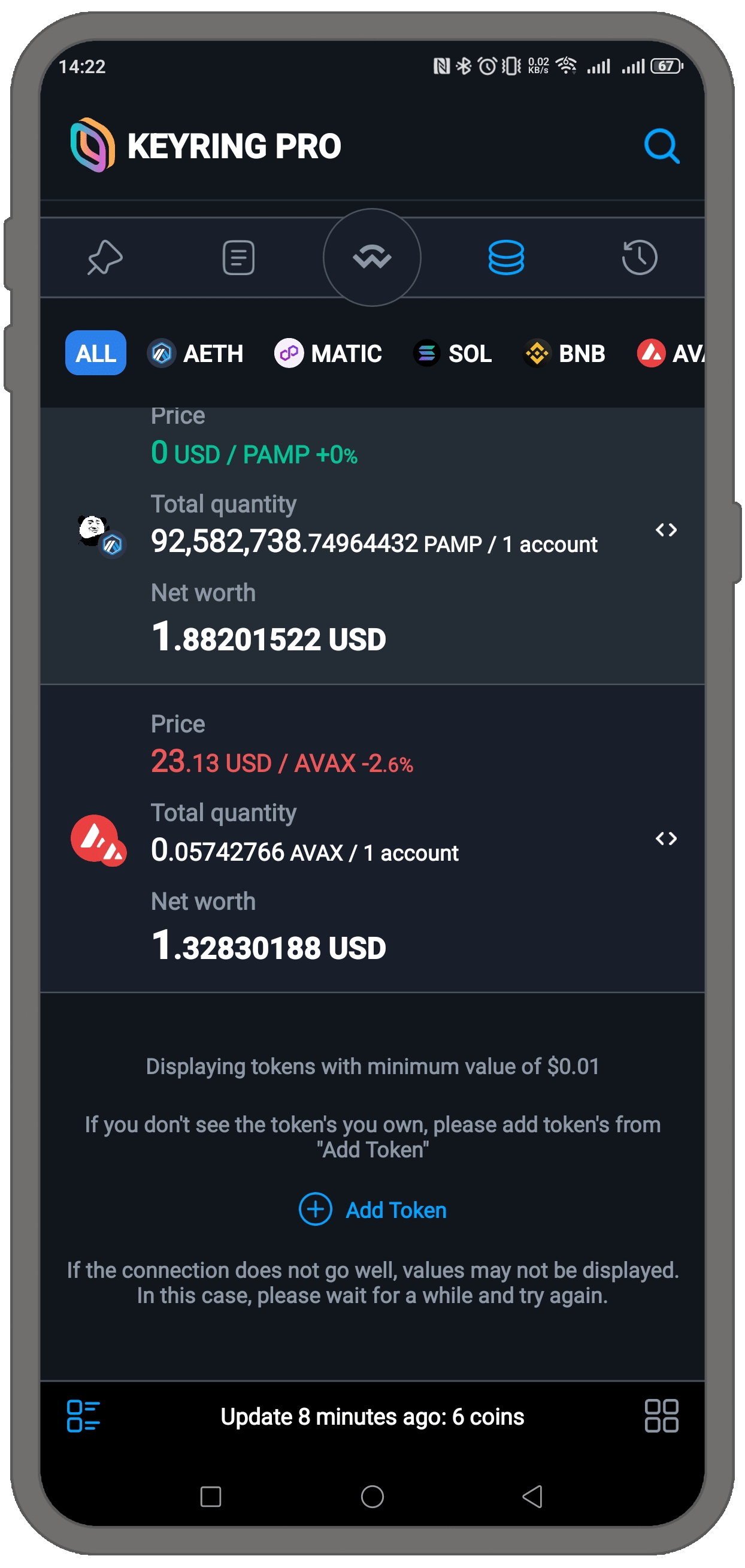 KEYRING PRO Walletに新しいトークンを追加するには、以下の手順に従ってください: