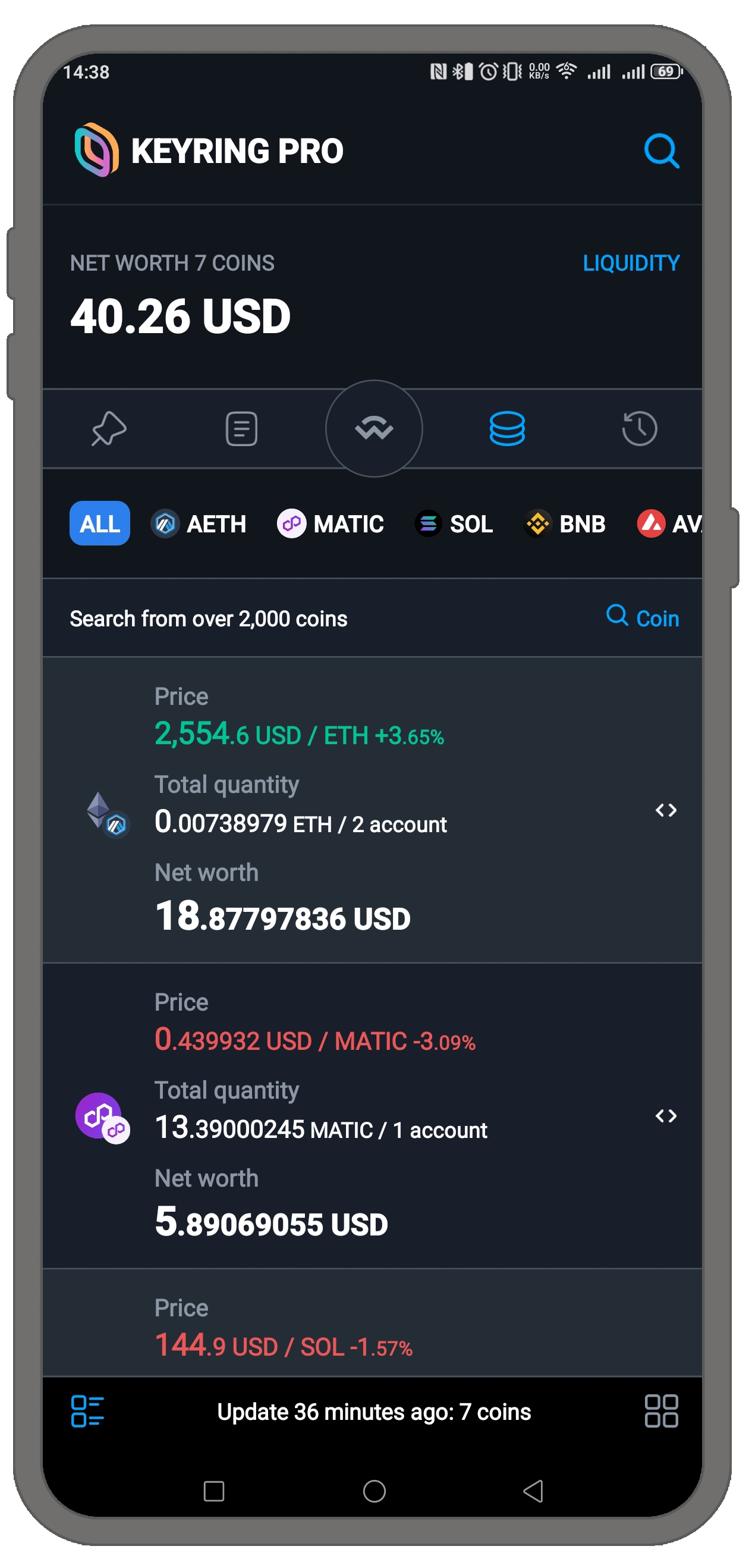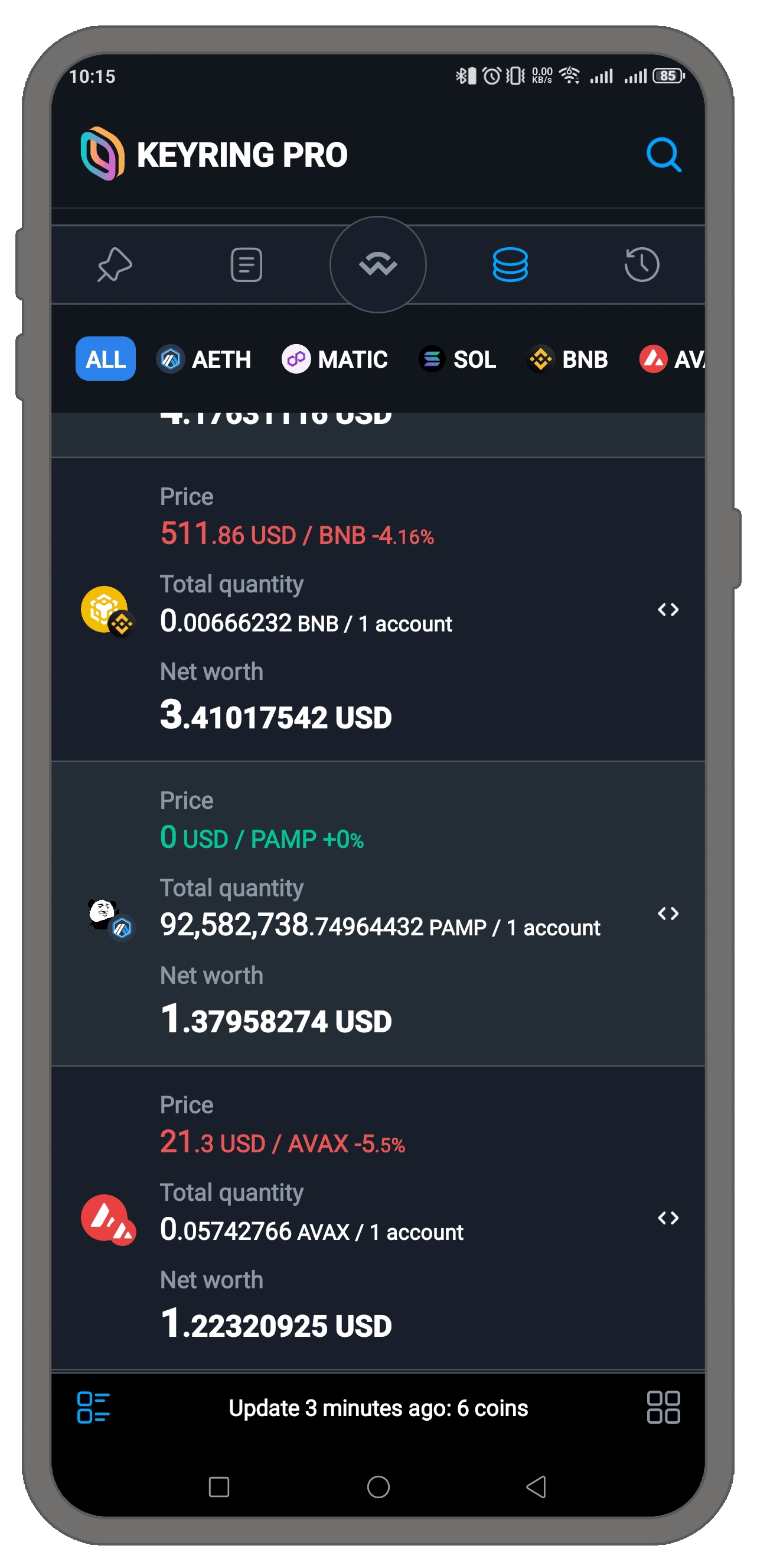 Assetsタブを開くと、保有しているすべてのトークンが表示されます(ただし、$0.01未満の非常に小額のトークンは除きます)。各トークンの現在の総価値を確認でき、これはそのトークンを保有しているすべてのアドレスの合計です。
