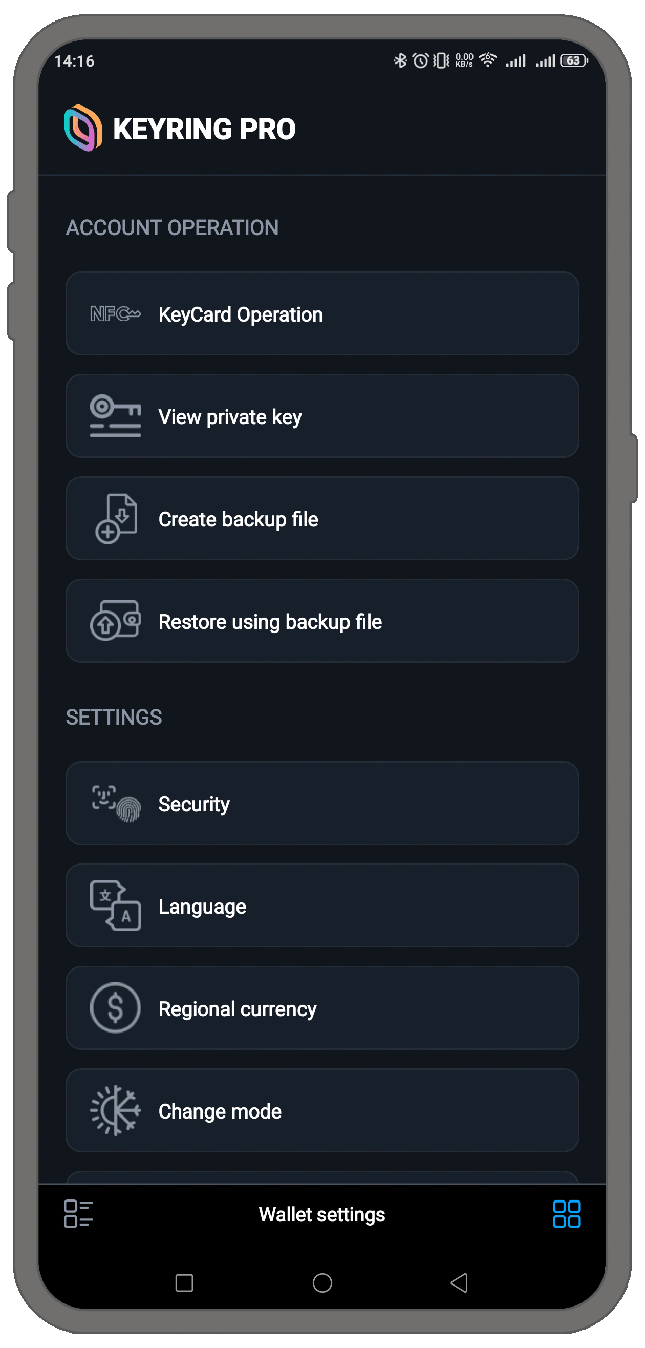 KEYRING PRO Walletでは、以下の2つのセキュリティ対策を提供しています。これらは、デバイス所有者本人による操作であることを確認する最終手段となります：