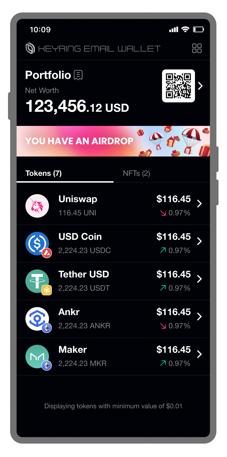 KEYRING Email Wallet users may receive airdrops depending on their activation address.&#x20;