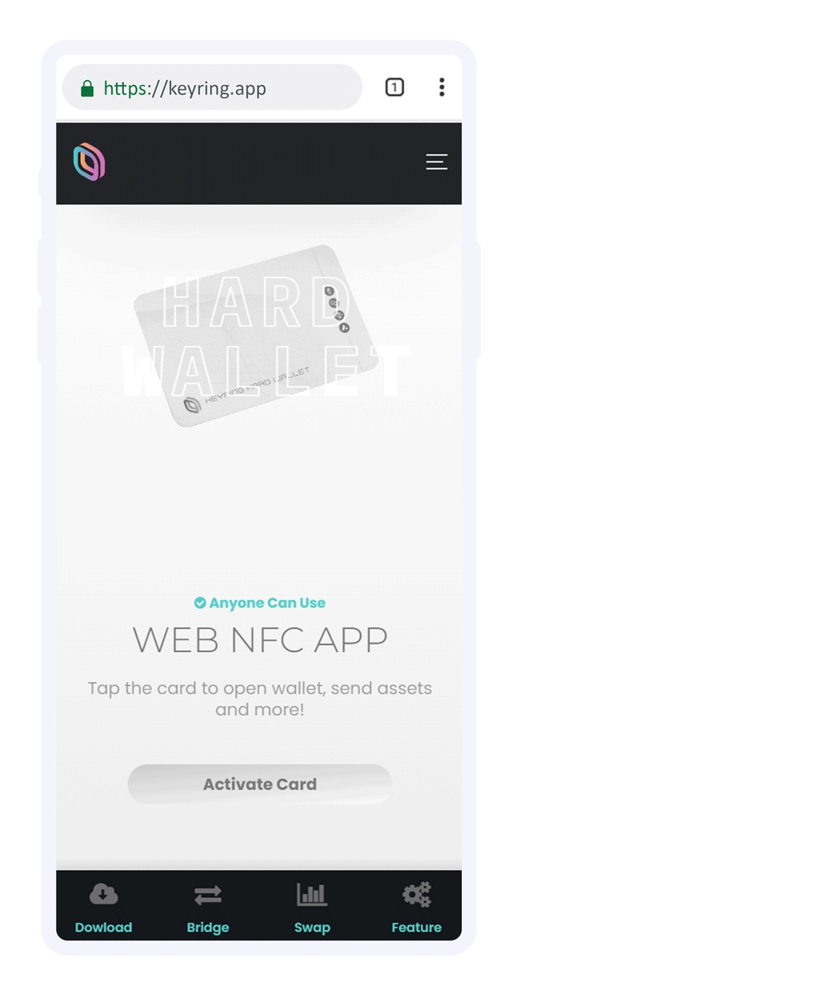 使用Chrome、Opera、Samsung Internet或Android WebView在手机上打开 https://keyring.app/keyring-hard-wallet/