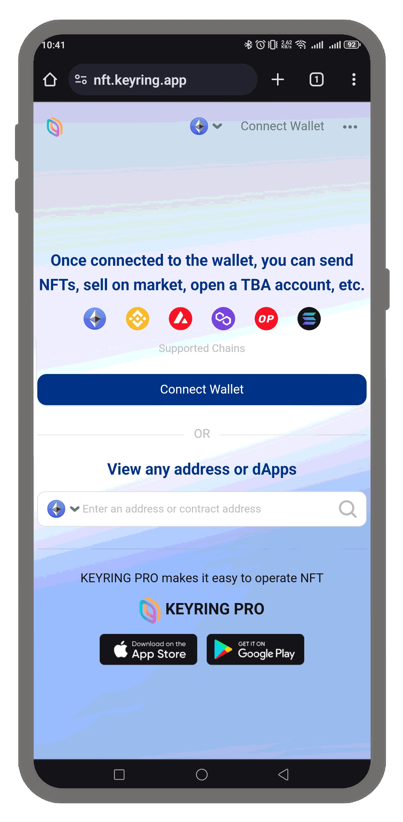 KEYRING NFT Viewer 的一个独特功能是您无需连接钱包即可查看特定钱包地址上的 NFT。