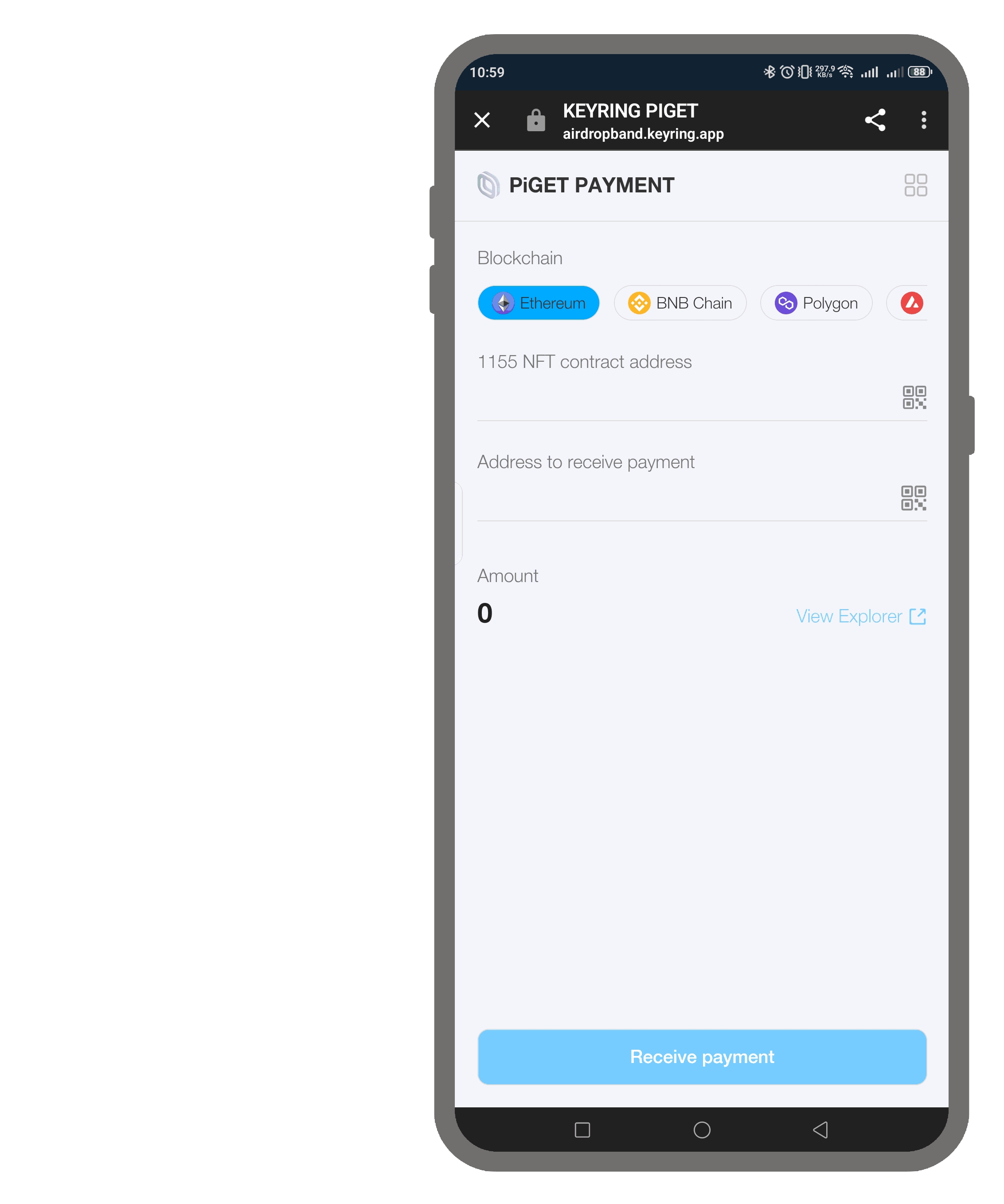 要进行支付,商家需要访问适用于他们打算使用的代币类型的 PiGET 支付页面。