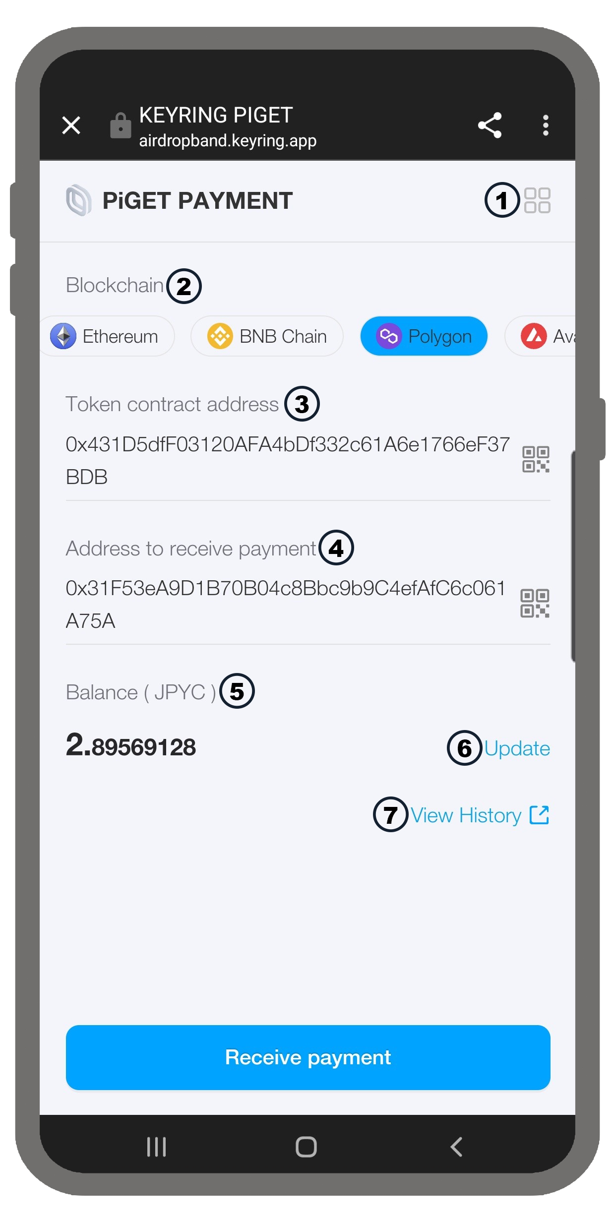 在访问 KEYRING PiGET 支付页面后,按照以下步骤接收支付: