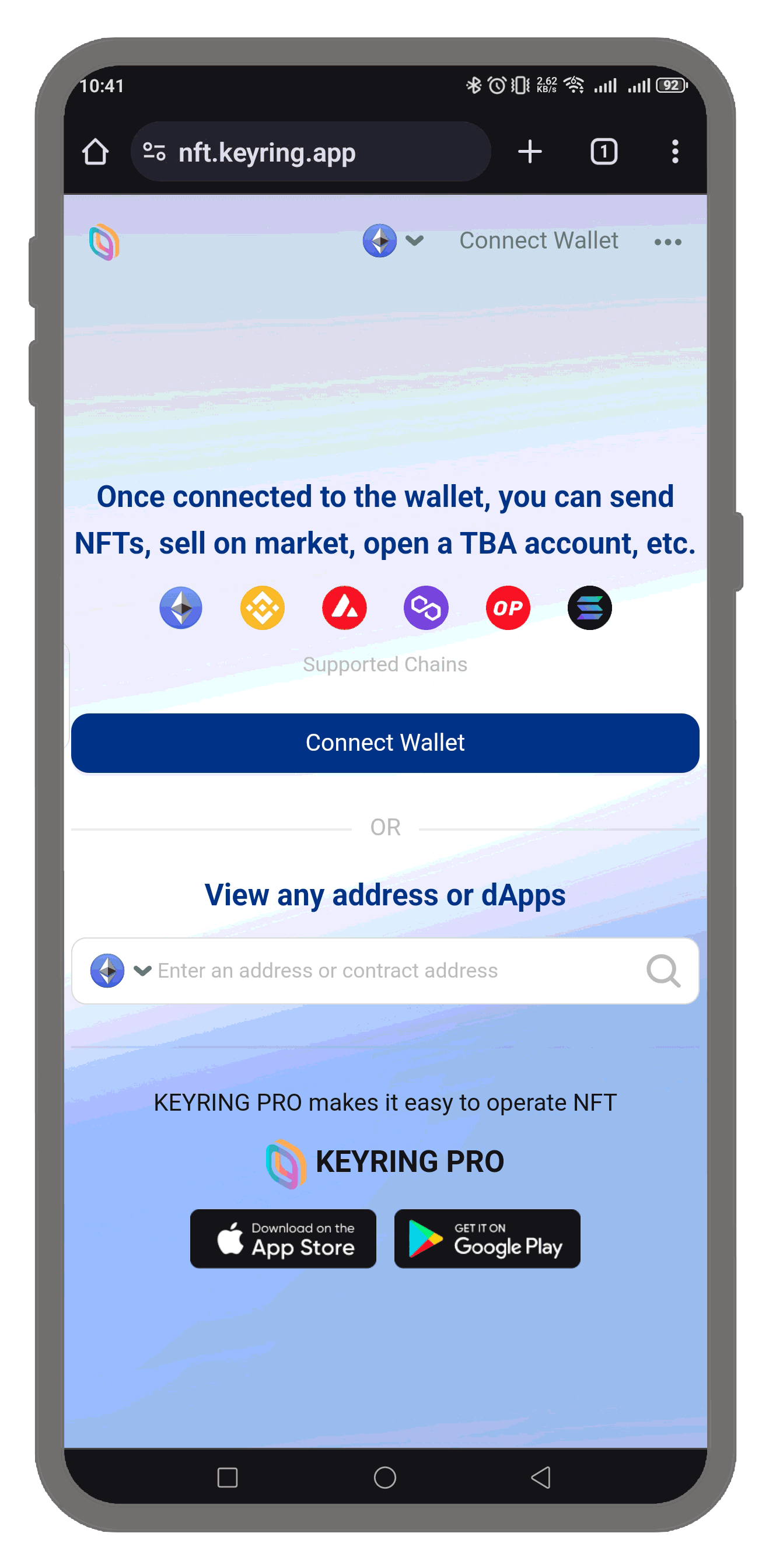 KEYRING NFT Viewer的一个独特功能是,您无需连接钱包即可查看某个钱包地址上的NFT。