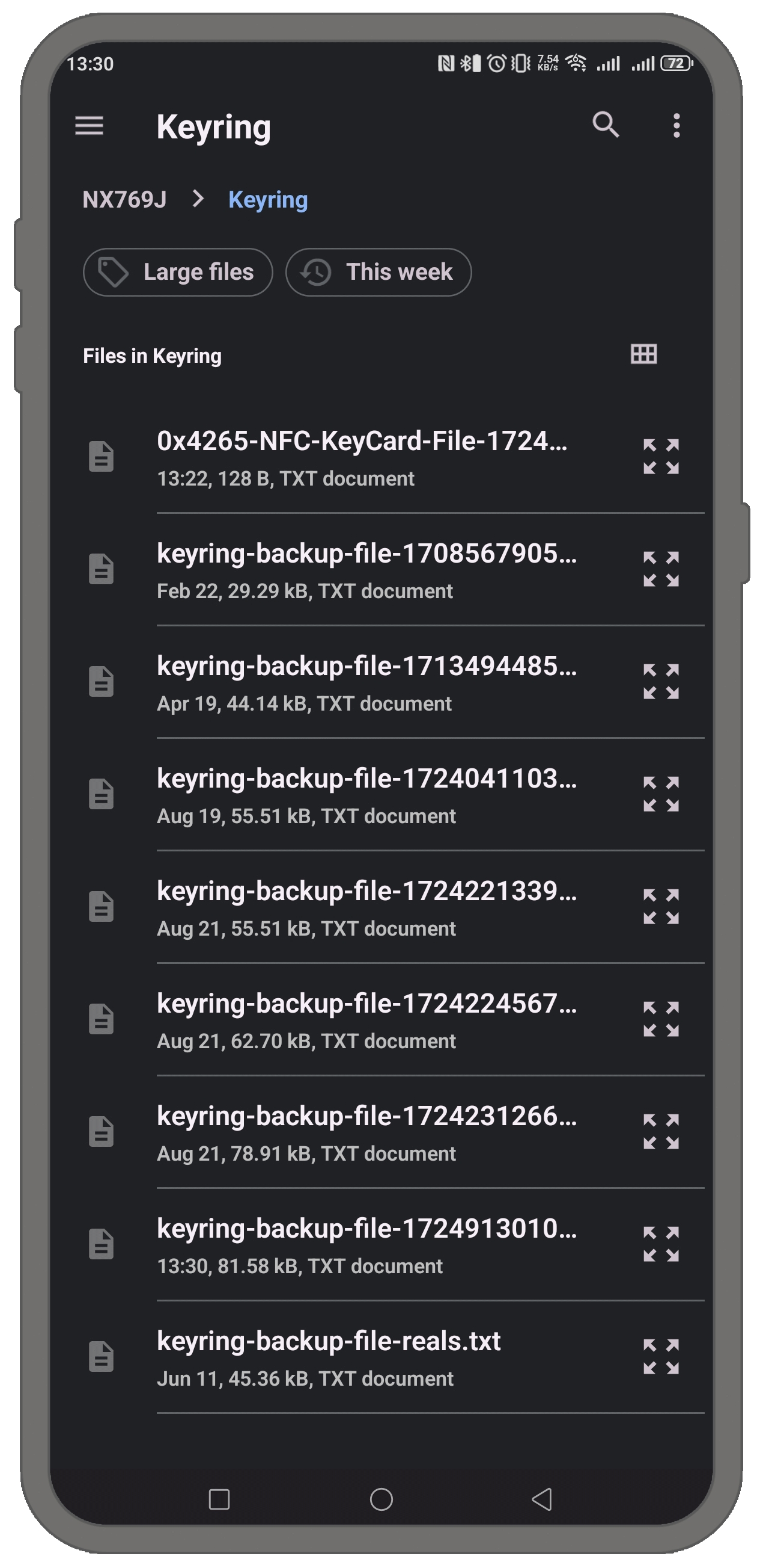 应用程序会将您导航到文档中,您可以在那里找到备份文件。