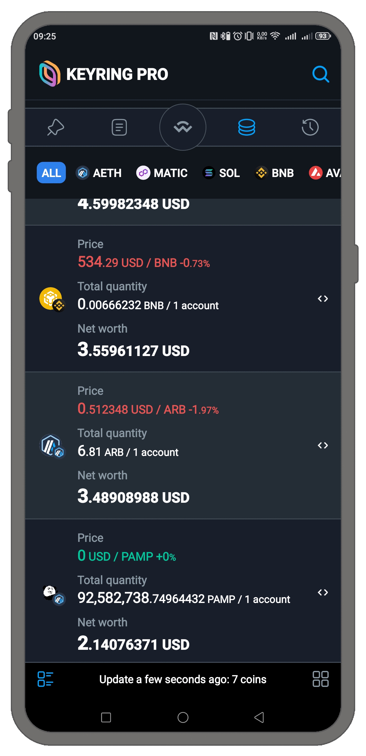 KEYRING PRO Wallet 允许用户直接在应用中交换代币,提供便捷的体验。操作步骤如下: